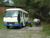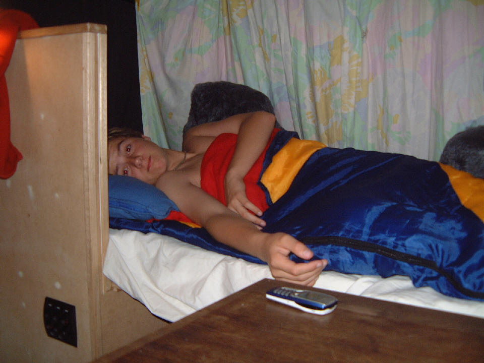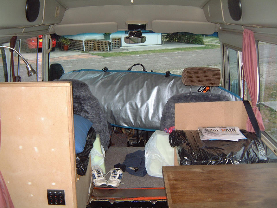 Jeroen voor het eerst in zijn nieuwe bus bed.