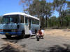 We hebben de plaatsen Orange en Mudge bezocht. Beiden bekend om de wijn en landbouw, maar van het laatste was weinig over ivm de droogte. Het ligt ongeveer 250 km ten westen van Sydney en je moet door de blue mountans om er te komen. De bus was perfect alleen de uitlaat liet los aan het eind.